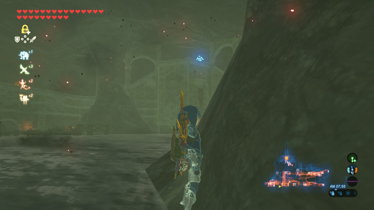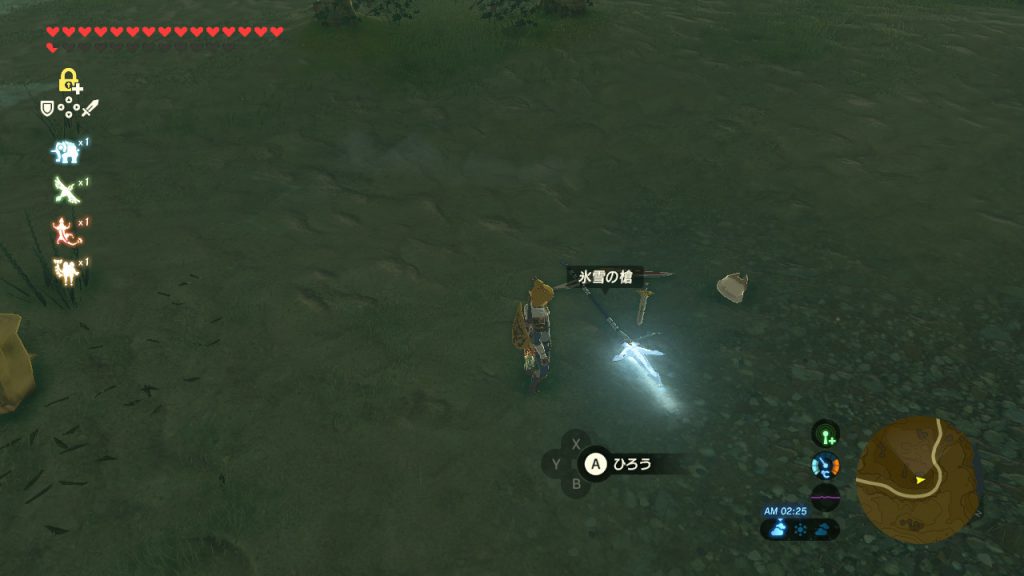 - マックストリュフ:避難壕からハイラル城へ向かう地下道で5〜6個手に入る。道なりに進むだけでは2個しかみつからない。センサに設定するといい。