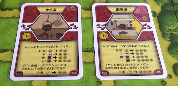アクションで何頭か手に入れたものの、どこにも置けない家畜がいる場合は、共通のストックに戻さないといけない(「逃がす」というらしい)。ただし、「かまど」のようなカードを持っていれば食料に変換したりできる。それについては別のところで説明する(予定)。