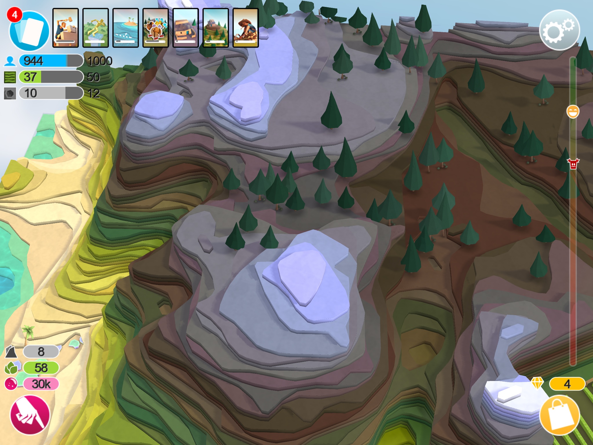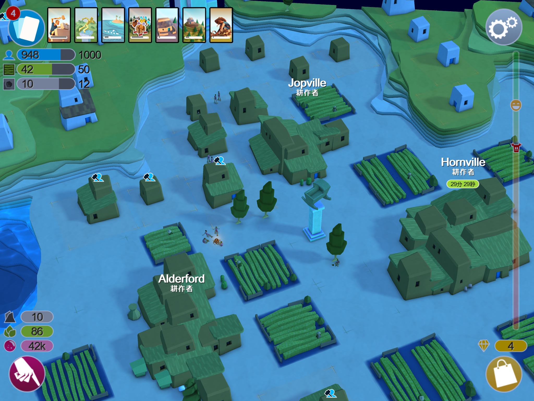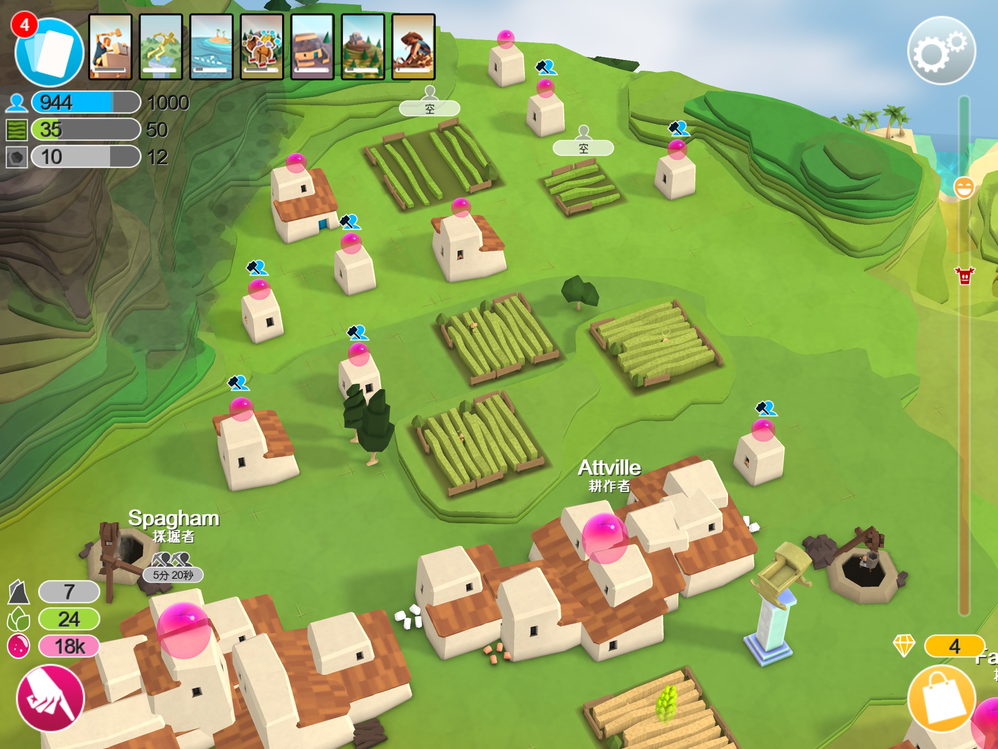 ・・・という感じで、ゲームとしては最初2,3時間ほどプレイしたあとは、結構まったりした展開になる。ときどきアプリを開いて見ては、信者の暮らしの様子を見て和むという、どちらというと平和が好きな神様に向いたゲームだと思う。