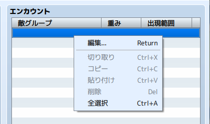 「エンカウント」と書かれた欄の中で、マウスの右ボタンをクリックします。