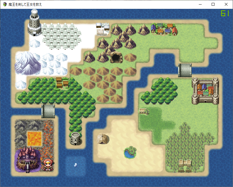 初級編ではマップはひとつだけで、魔王城などに入ることができませんでした。ここでは、魔王城や王国のお城のところまで行くと、王国のお城の中や魔王城の中に入れるようにする方法について説明します。