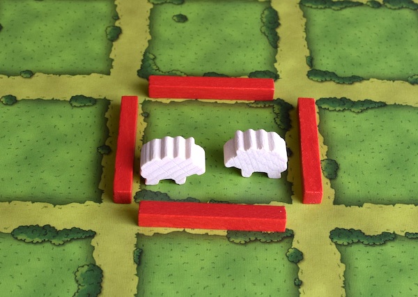 牧場のマスがひとつなら置ける家畜は 2 頭まで。もちろん、1頭だけ置くのは問題ない。