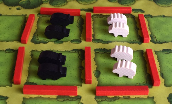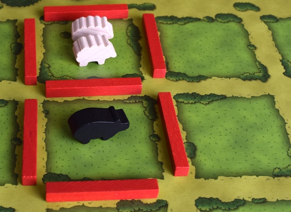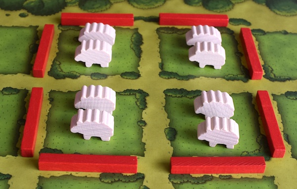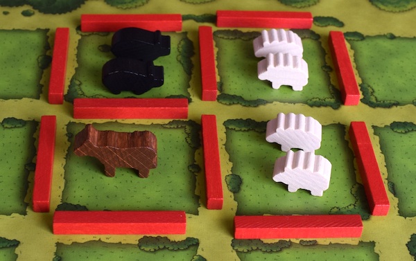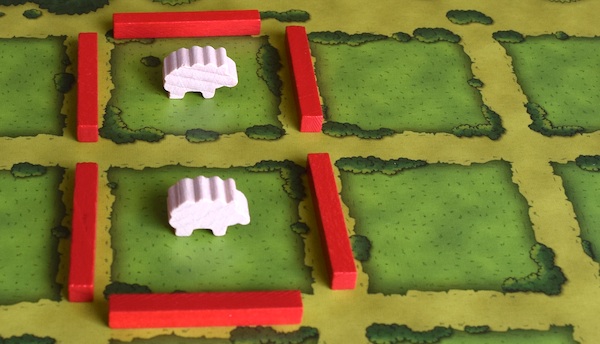 最初に羊が3頭いる状態で牧場を分割した場合は、羊を1頭逃がせば(共通のストックに戻せば)、猪や牛を置くことはできる。羊が3頭のままでは牧場を分割しても、牧場の容量(マスの数)そのものが足りないので、分割しても猪や牛を置く場所がない。
