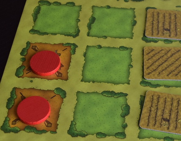 一方で、収穫フェイズに家族分の2倍の数だけ食料を払う必要がある。もし払えないと「物乞いカード」というマイナス3点になるカードを押しつけられてしまうので、必ずしも家族が多いほうが良いとはいえない。